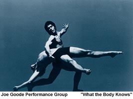 February 7, 9, 2002 San Francisco Ballet: Without Words, Angelo, Prism "Nacho Duato’s exquisite "Without Words" only becomes more beautiful with each viewing. The starkness of the figures moving through a dark space, with a shadowy echo of the dancers projected on a hanging curtain are only small, yet important details in a work that has been conceptualized with deep sensitivity from start to finish." February 5, 2002, Cal Performances: James Joyce, Marcel Duchamp, Erik Satie: An Alphabet "An Alphabet" is a sprawl of ideas juxtaposed into what could be a fascinating collage of thought. However, the very static and at times confusing direction of this "performed installation" served to smother rather than illuminate the proceedings and ended up producing a bewildering barrage of stimuli for the ears and hardly anything for the eye. A few audience members lasted only a bit longer than four minutes and thirty-three seconds into the piece before making their way quietly up the aisle."