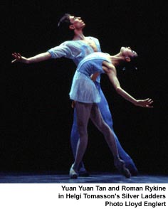 April 22, 2002, LINES Contemporary Ballet: The Heart's Natural Inclination, Splash, Koto "Choreographer and artistic director Alonzo King has fallen lately into a kind of habitual approach to his works, but while 'Koto' exhibits a few of his formulaic characteristics, it also transcends them with fascinating imagery, tight musicality, and above all, concision." April 5, 2002, Compagnie Maguy Marin: Points de fuite "A bare stage, screaming guitars, flocking dancers, 'Don't talk to me about what you are saying. I'm not asking you what you are saying,' -- all without intermission. French post-modernist Maguy Marin frustrates." April 4, 2002, San Francisco Ballet: L'Arlesienne, Continuum, Death of a Moth "San Francisco Ballet's Program 6, which runs in repertory with Program 5 for two weeks, is an uneven mix of pieces, but nonetheless, there were several memorable moments and a clear standout in the premiere of Christopher Wheeldon's 'Continuum.'" April 2, 2002, San Francisco Ballet: Chi Lin, A Garden, Later, Black Cake "Of the four, 'Chi-Lin' was probably the most successful, with production values and dancing that elevated it above most of Tomasson's previous works." April 17, 2002, San Francisco Ballet: A preview of Yuri Possokhov's Damned April , 2002, National Dance Week: A preview of free events around the Bay Area